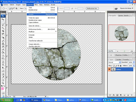 Ahora le damos clic derecho sobre la capa>Opciones de fusión y le agregamos efecto a nuestra esfera, en este caso: